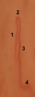 - Número de asas capilares visibles en la fila distal por milímetro lineal.